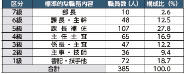 2) 標準的な職務内容とは、それぞれの級に該当する代表的な職務です。