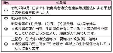 対象者:次の表の先順位遺族1人