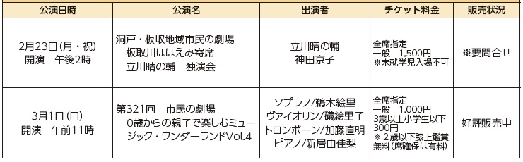 ※今後発売を予定している公演の詳細は、発売月号でお知らせします。なお、予定が変更になる場合がありますので、あらかじめご了承ください。