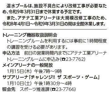 ■〔案内〕アテナ工業アリーナのお知らせ