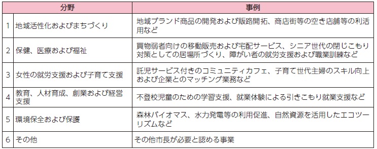 (1)市内で子育て、福祉、環境、まちづくりなどの社会的課題をビジネスの手法で解決し、または地域の活性化を図る事業であること。