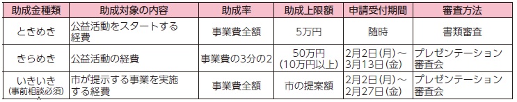 市内で活動する団体が地域課題の解決や地域の活性化のために行う公益活動に対して助成します。