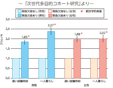 ◆「朝食を抜く頻度が高い人は肥満や脂質異常症などの生活習慣病になりやすい」