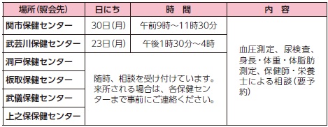 ・武儀保健センター・上之保保健センター
