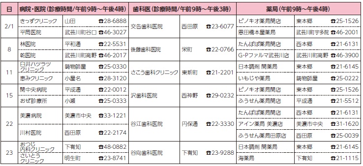 ■〔案内〕2月の休日診療当番
