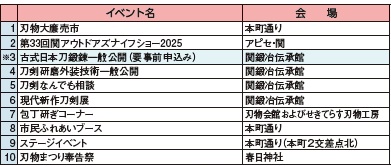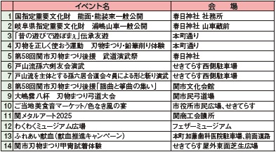 本町通りを中心に刃物大廉売市、関アウトドアズナイフショーや古式日本刀鍛錬の一般公開などのさまざまなイベントを開催し、充実した内容で多くの皆さまのお越しをお待ちしております。