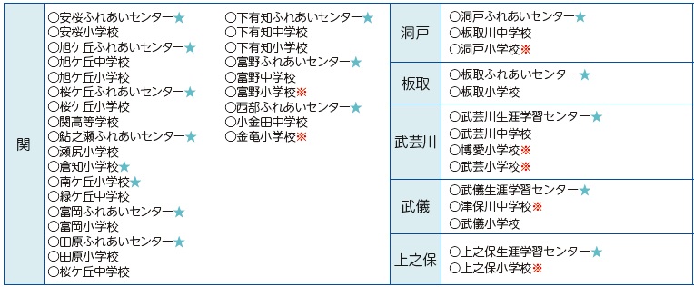 ※…大雨による災害の場合に開設しない避難所