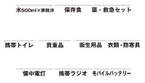 ※その他、生理用品・粉ミルク・アレルギー対応非常食など家族に必要な物を考えて準備しましょう。