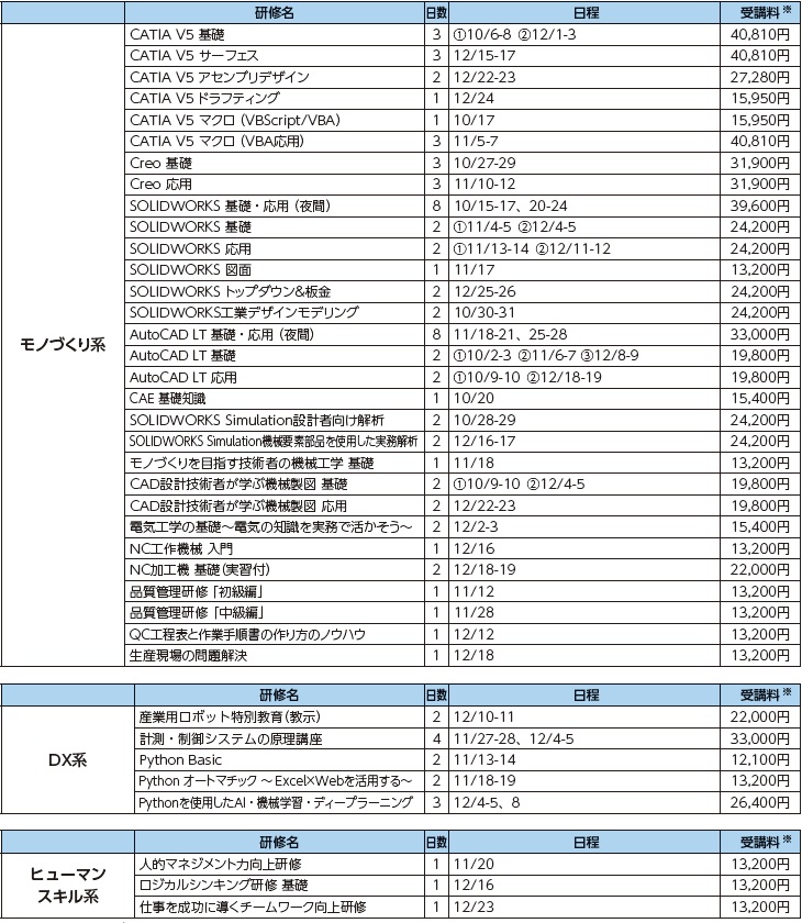 ◇令和7年度 テクノプラザイノベーション研修 10月~12月 研修一覧