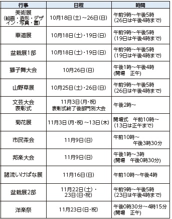 第75回関市美術展・第70回関市文化祭の日程は次のとおりです。