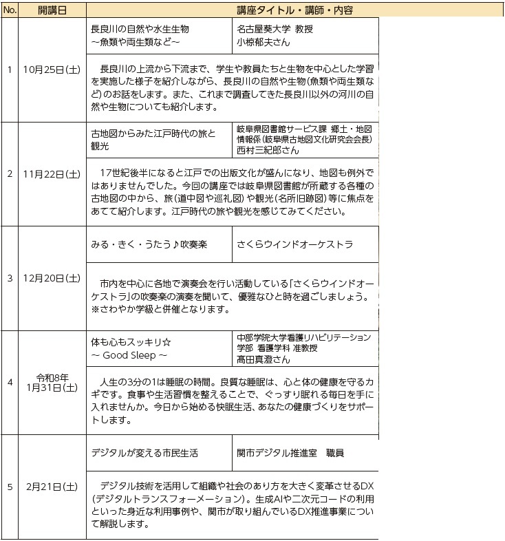 ■〔催し〕〈生涯学習いきいきコース〉 令和7年度(後期) 関市アカデミック講座