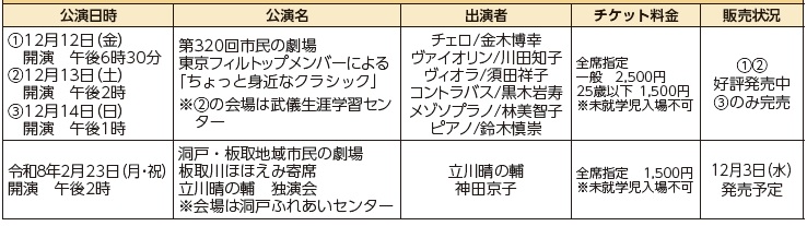※今後発売を予定している公演の詳細は、発売月号でお知らせします。なお、予定が変更になる場合がありますので、あらかじめご了承ください。
