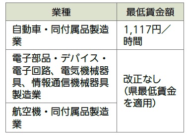 最低賃金の改正県の最低賃金は、10月18日(土)から1,065円/時間に改正されています。特定の産業に従事する労働者には特定(産業別)最低賃金が適用され、12月21日(日)から改正されます。