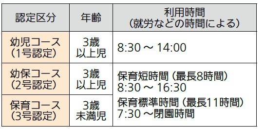 ※幼保コース・保育コースでは、保護者の就労などの時間により、保育短時間と保育標準時間のどちらかが利用できます