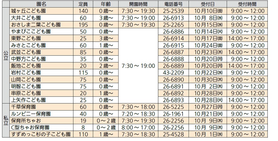 ■こども園、私立保育園、小規模保育所令和8年度の入園受け付け