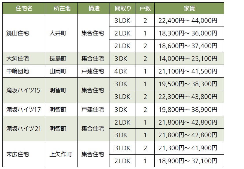 対象:住宅に困っていて、市税の滞納が無く、親族と同居できる方(所得制限があります)