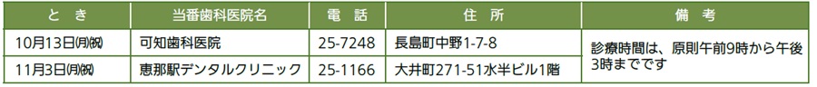■休日在宅当番歯科医