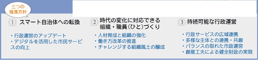 第4次までの行財政改革の実践や現在の本市を取り巻く状況を踏まえたうえで、令和8年度から始まる第5次行財政改革の基本理念と推進方針を次のように決定しました。