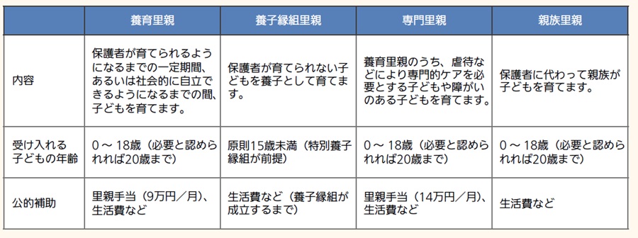相談…里親支援センターや子ども相談センターに相談し説明を受ける
