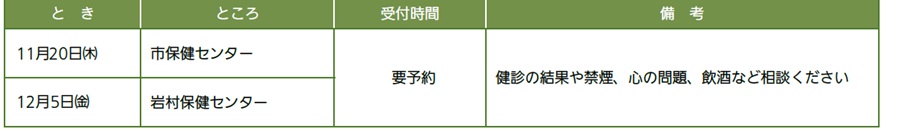 問合せ:市保健センター