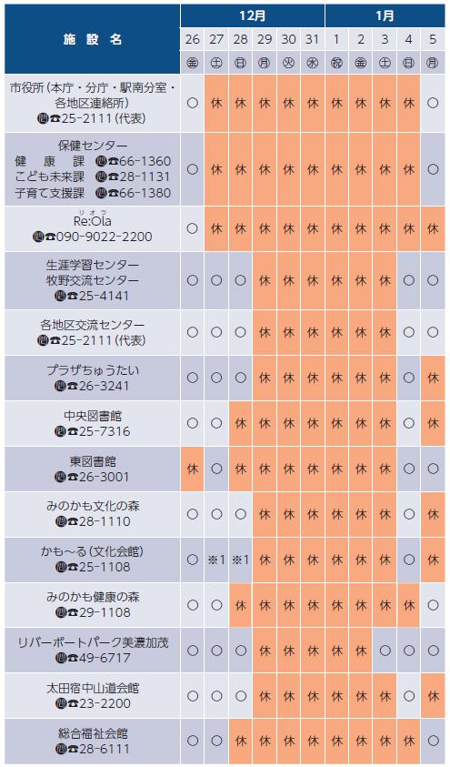 ※1…かも~るの12月27日(土)、28日(日)は、全館清掃のため貸館業務をお休みします