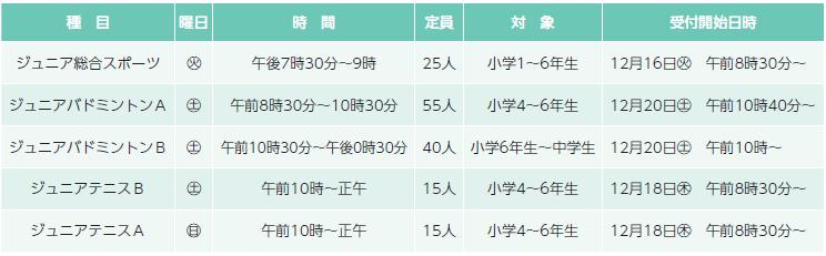 ※ジュニア種目以外については、定員に空きがあれば期間の途中でも申し込みができます