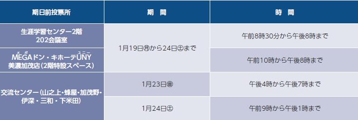 期日前投票は、次の投票所・期間・時間で行うことができます。(いずれの期日前投票所でも投票できます)