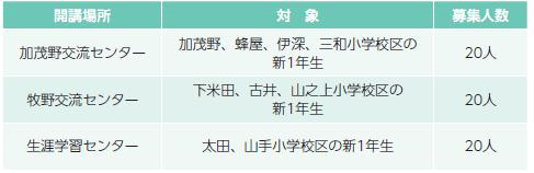 募集内容:(募集人数を超えた場合は抽選となります)