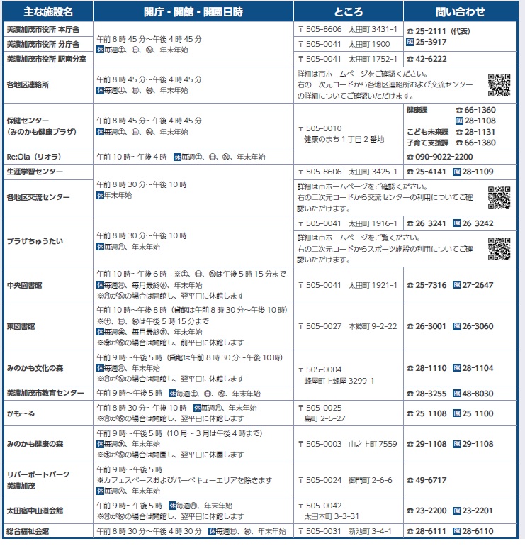 くらし 主な施設のご案内 43/47 前の記事 次の記事 発行日 : 2025年10月10日 自治体名 : 岐阜県美濃加茂市 広報紙名 : 広報minokamo 令和7年10月号 ※いずれも市外局番は「0574」です ※振替休日は祝日として表記しています Tweet シェアする 今月の各種無料相談日 2025.10.10-2025.11.09(2) 美濃加茂市の動き