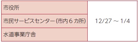 年末年始の、市の施設、生活に関連する業務などの取扱を紹介します。市ウェブサイトでも公開しています。