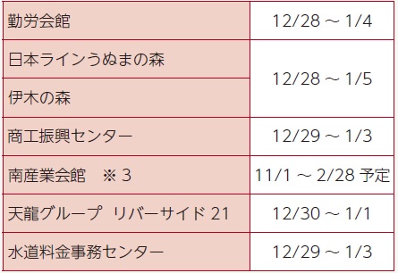 期間:12月30日~1月4日(川島地区は12月26日~1月5日)