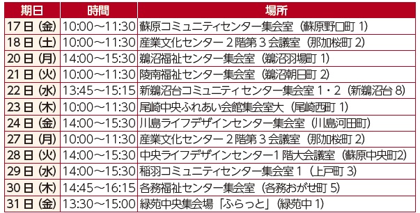 場所:稲羽西福祉センター集会室(小佐野町3)