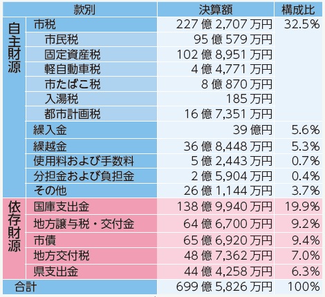 自主財源とは、市税のように市が自ら決定し収入しうる財源です。