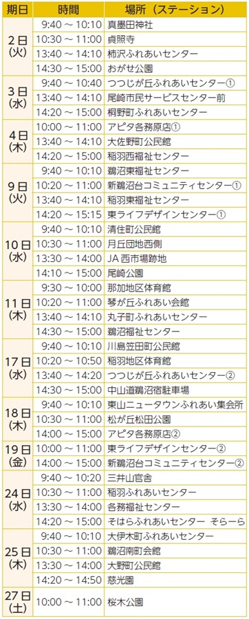 ◇あなたのまちへ図書館がやってくる 移動図書館さつき号の12月巡回日程