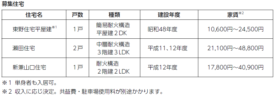 申込方法:申込書(施設住宅課にあり)に必要書類を添え同課窓口に提出