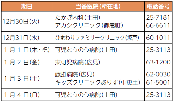 可児市・御嵩町の年末年始の実施医療機関です。