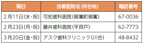 ■2・3月の歯科休日診療当番医