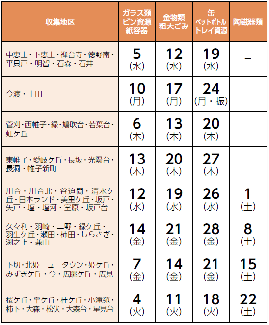 ※ごみは当日の8時までに出してください。祝日・振替休日も回収します。