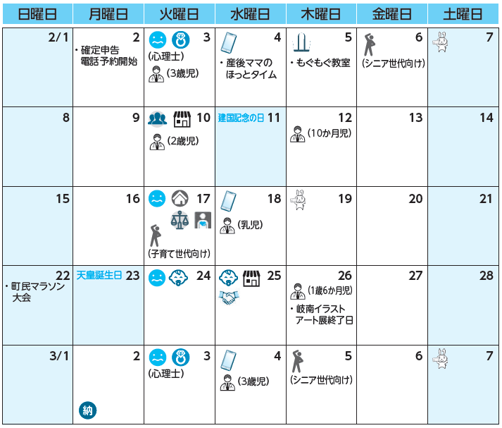 (※カレンダー中のアイコンおよび上記各表中の左空欄につきましては本紙をご覧ください。)