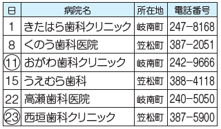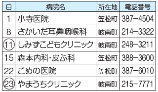 すべての日程とも、松波総合病院(笠松町)【電話】388-0111