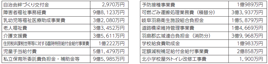 ・補助費等…各種団体への補助金、羽島郡広域連合などへの負担金
