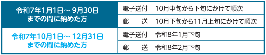 ◆国民年金保険料を納めた時期によって、「証明書」が届く時期が異なります。