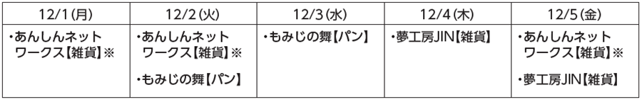 日時:12月1日(月)~5日(金) 午前10時から午後2時(売り切れ次第終了となります。)