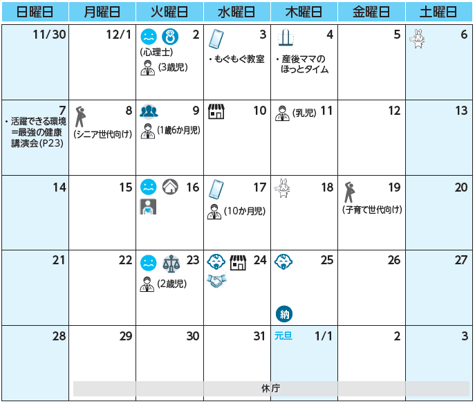 (※カレンダー中のアイコンおよび上記各表中の左空欄につきましては本紙をご覧ください。)