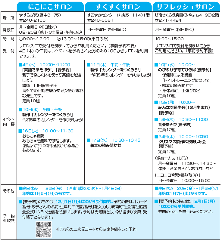 ・サロンの利用は岐南町在住の就園前のお子さんと保護者の方に限ります。