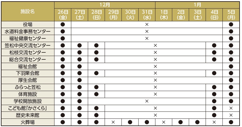 ●利用可能 ×お休み