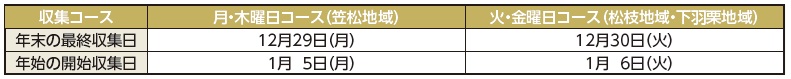 「ごみ積替施設(株式会社高島衛生)」へ直接持ち込む方は、環境経済課で発行する許可書を持参して、12月27日(土)午後3時までに投入してください。年始の受入れ開始は1月7日(水)からです。
