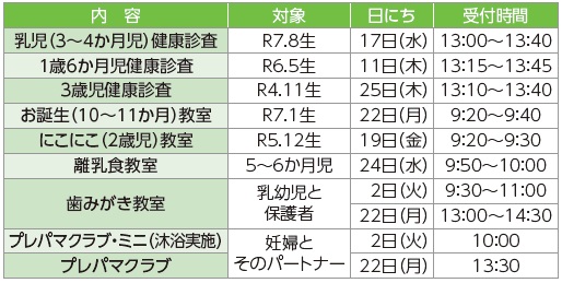 ■子どもの健診・教室(場所…福祉健康センター)