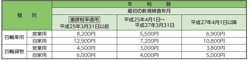 最初の新規検査から13年以上経過した軽自動車(電気自動車などは除く)には、重課税率が適用され、次の金額となります。