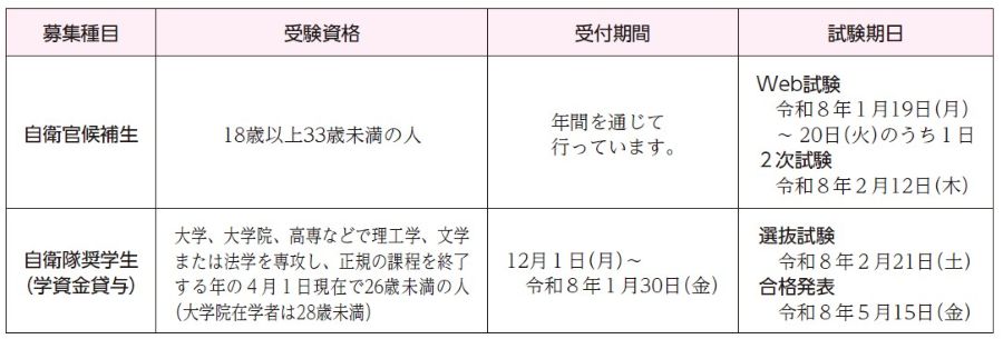 ※自衛官候補生受験資格の年齢は採用予定月の末日現在です。
